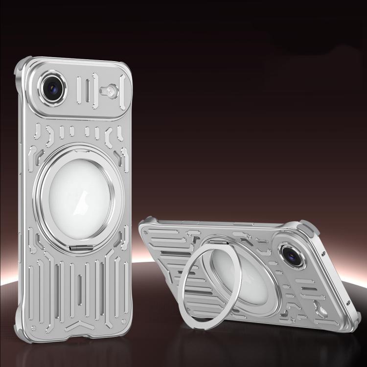Funda metálica sin marco para iPhone Air Mech Series con soporte giratorio de refrigeración (plateada)