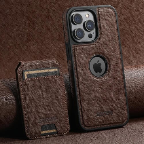 Funda para iPhone 12 Pro Suteni M2 Parte Trasera Tarjeta Vertical Magsafe (Marrón)