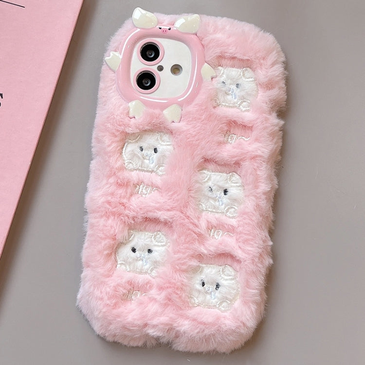 Funda para iPhone 16 Bordado de Felpa Cobertura Total (Cerdo Rosa y Blanco)
