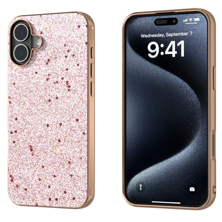 Funda para iPhone 16 con Marco Galvanizado y Purpurina a Prueba de Golpes (Dorado y Rosa)
