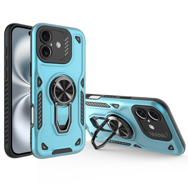Funda para iPhone 16 Soporte Giratorio Metal Carcasa Magnética TPU y PC (Azul Brillante)