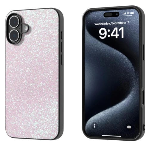 Funda para iPhone 16 Plus Marco Negro Purpurina Colores (Rosa Brillante)