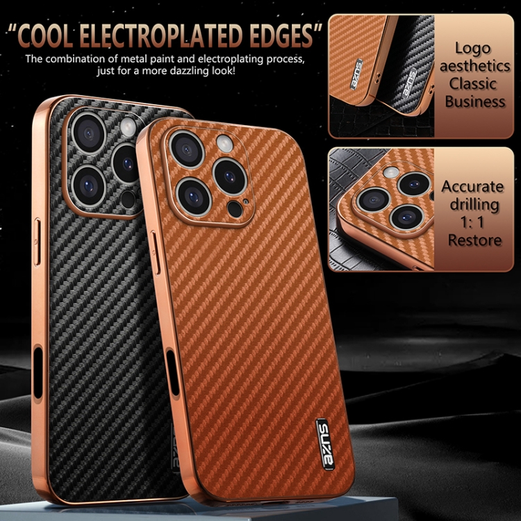 Funda para iPhone 16 Pro Azns Textura Fibra de Carbono Borde Galvanizado (Azul)