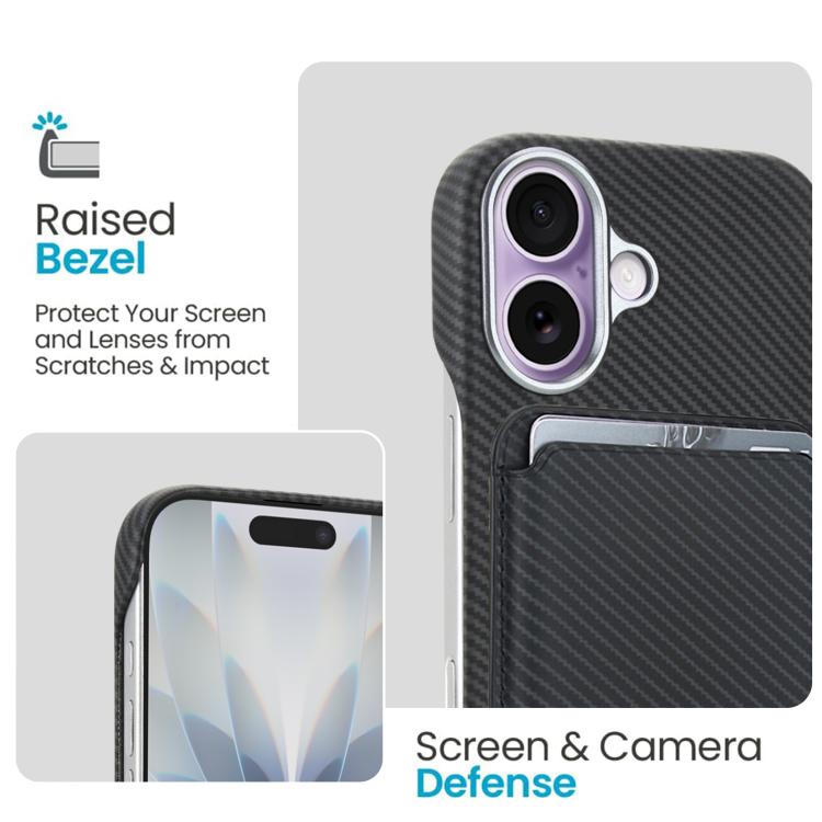 Funda para iPhone 17 con tarjetero magnético MagSafe de fibra de carbono (negra)