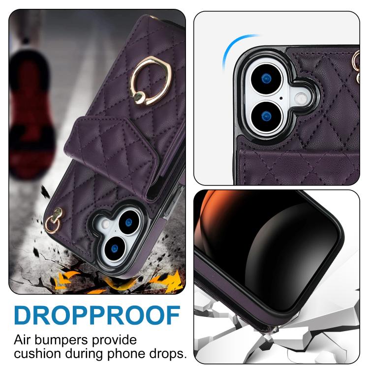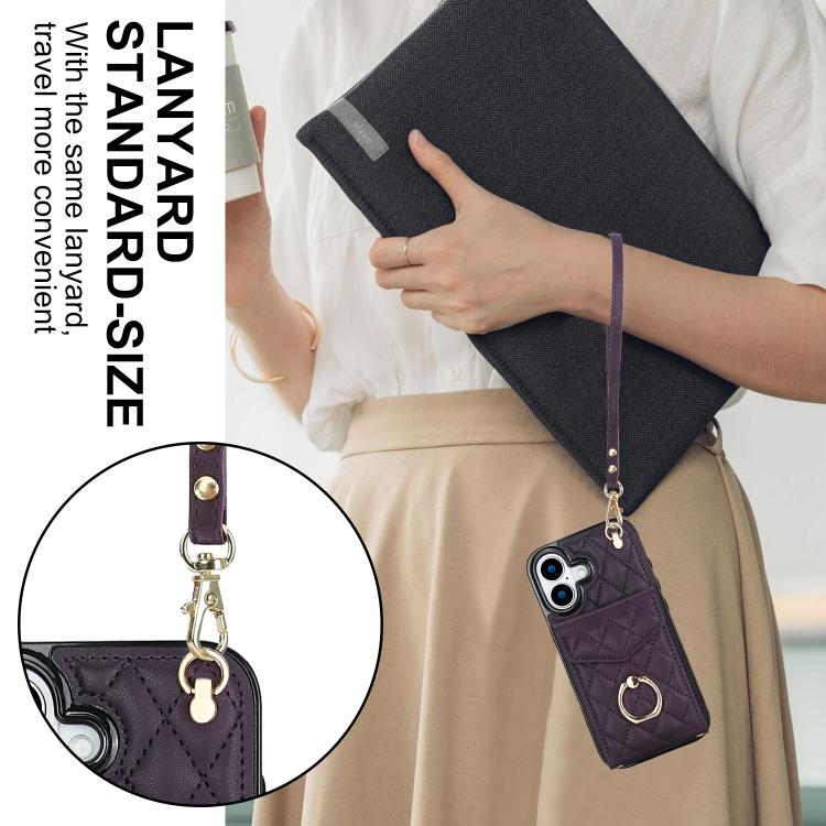 Funda para iPhone 17 con textura rómbica y cordón largo (morado oscuro)