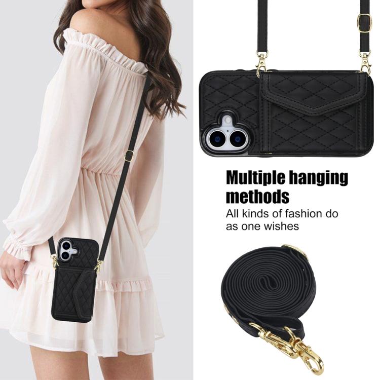 Funda para iPhone 17 con textura rómbica y cordón largo (negra)