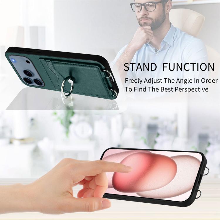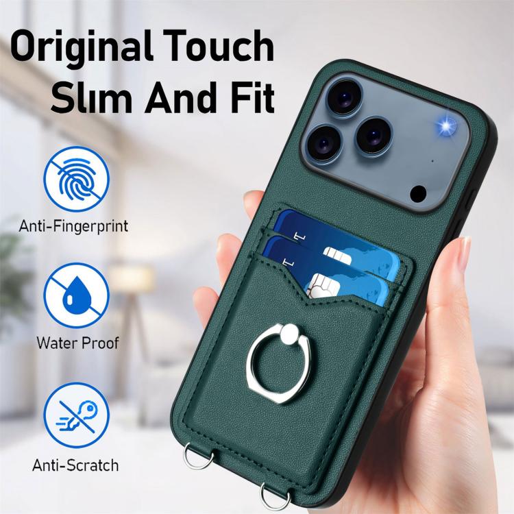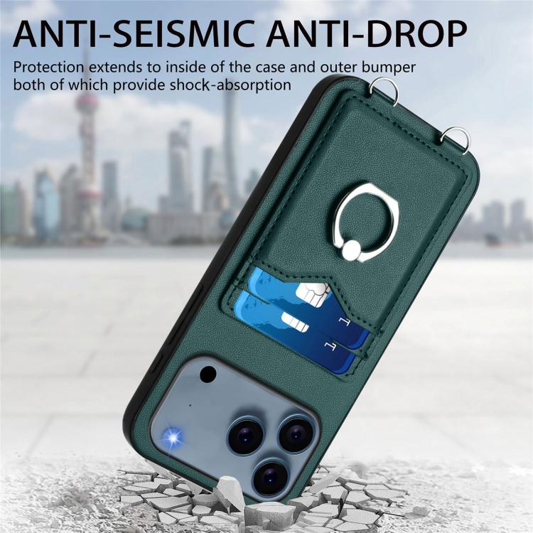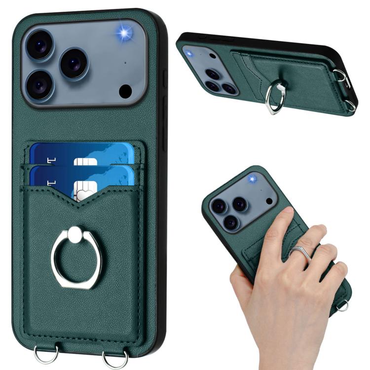Funda para iPhone 17 Pro Max R20 con anillo de cuerda cruzado y tarjetero (verde)