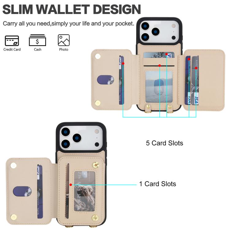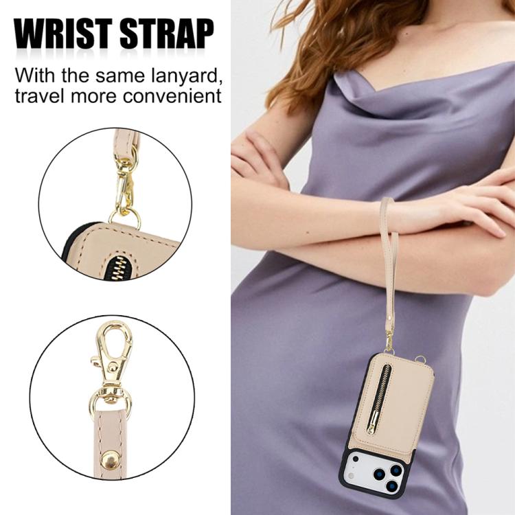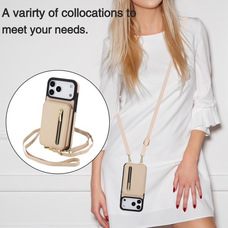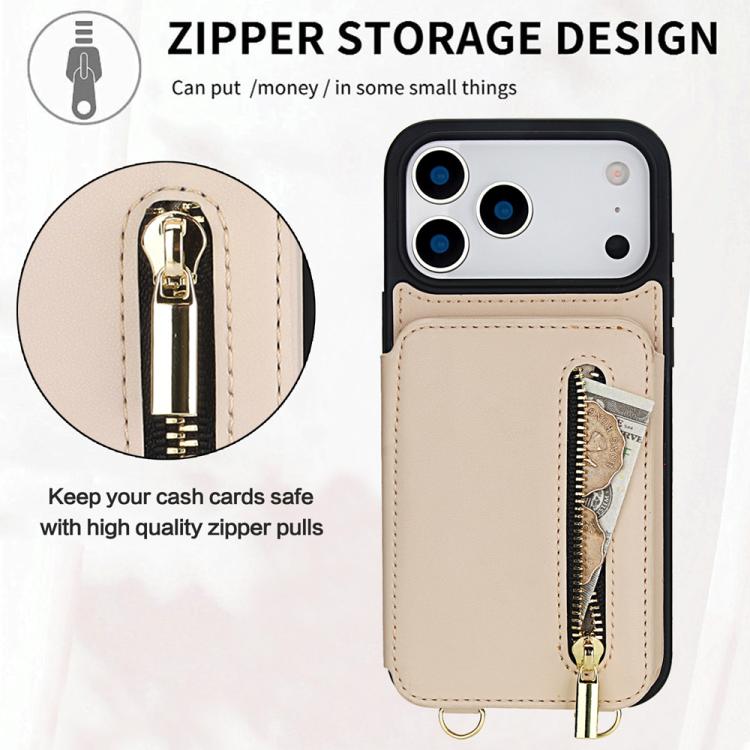 Funda para iPhone 17 Pro YM006 con cremallera y doble cordón (albaricoque)