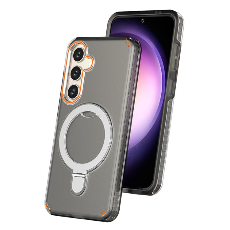 Funda para Samsung Galaxy S25/S24 5G, colorida, 2 en 1, con soporte de anillo MagSafe (negro transparente)