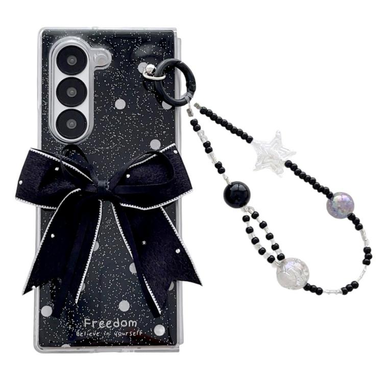 Funda para Samsung Galaxy Z Fold6 con diseño de puntos brillantes y lazo (negro)
