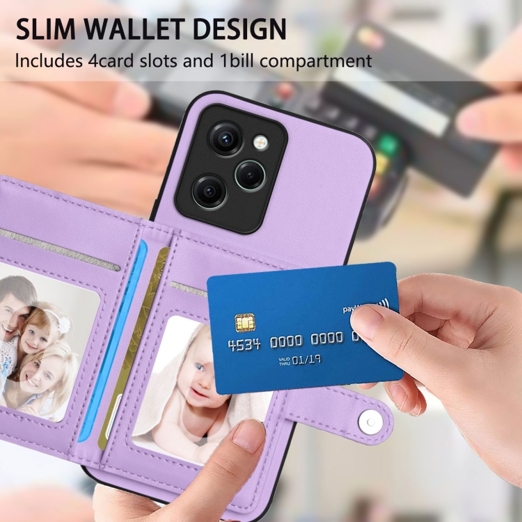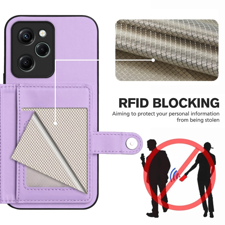 Funda para Teléfono Antirrobo con Botón y Tarjeta Rfid para Xiaomi Poco X5 Pro (Morado)
