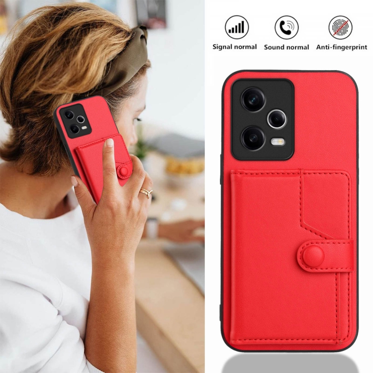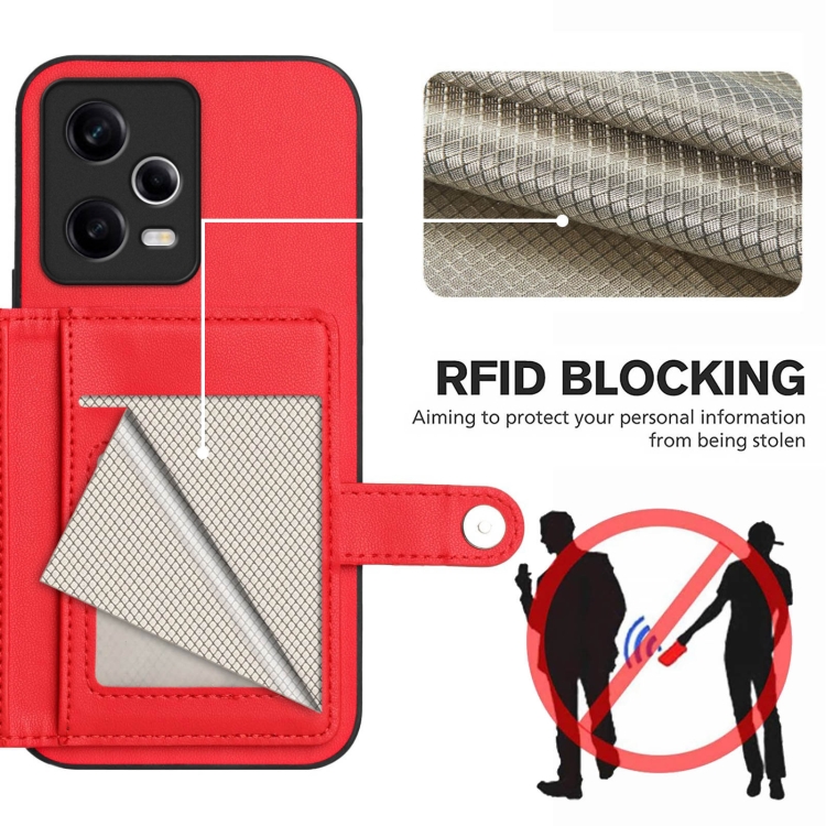 Funda para Teléfono Antirrobo con Botón y Tarjeta Rfid para Xiaomi Poco X5 (Roja)
