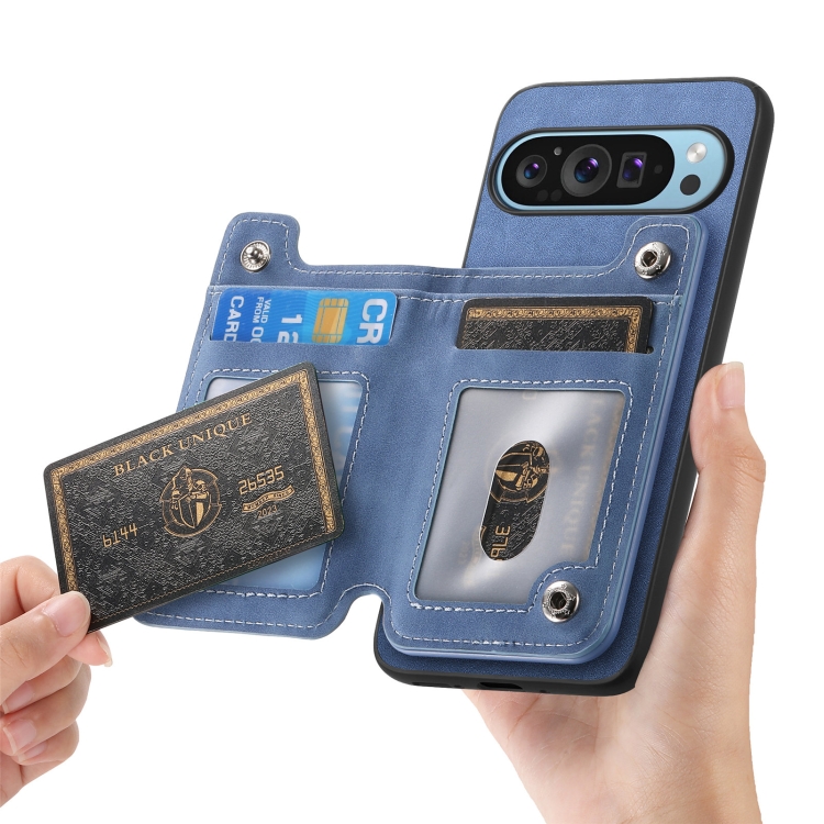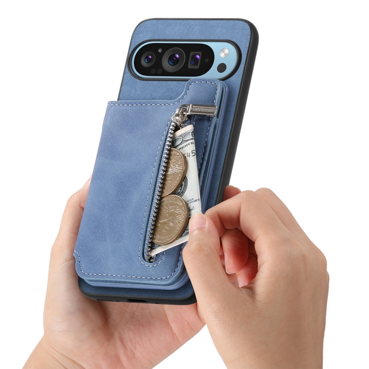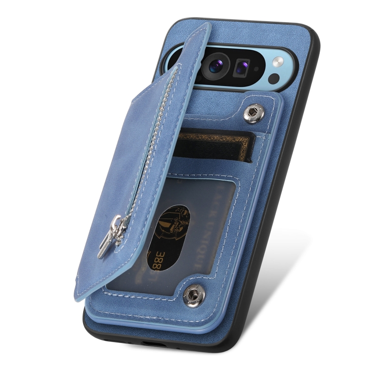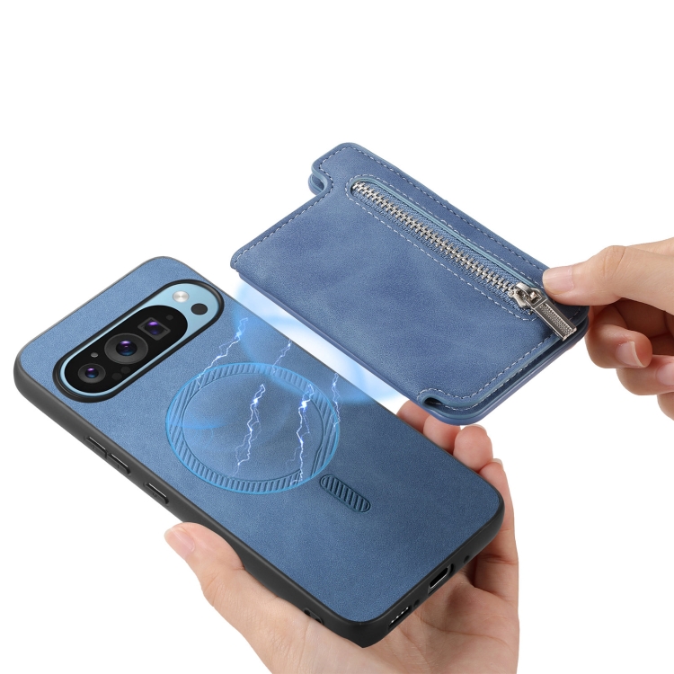 Funda para Teléfono con Cremallera Magsafe Retro para Google Pixel 9/9 Pro (Azul)