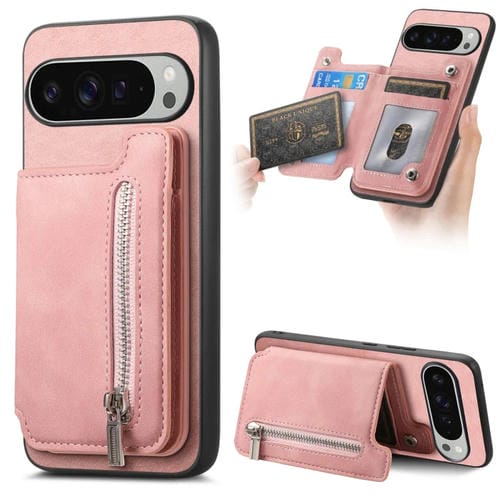 Funda para Teléfono Google Pixel 9 Pro XL con Cremallera Magsafe, Tarjetero y Cartera (Rosa)
