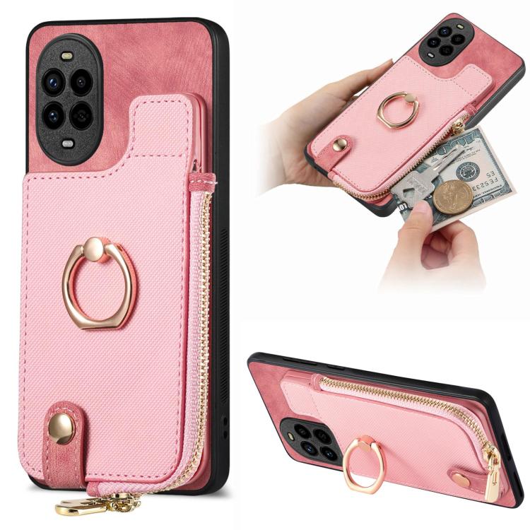 Funda para Teléfono Huawei Nova 13 Pro con Cremallera Vertical y Anillo de Cuero Cruzado (Rosa)