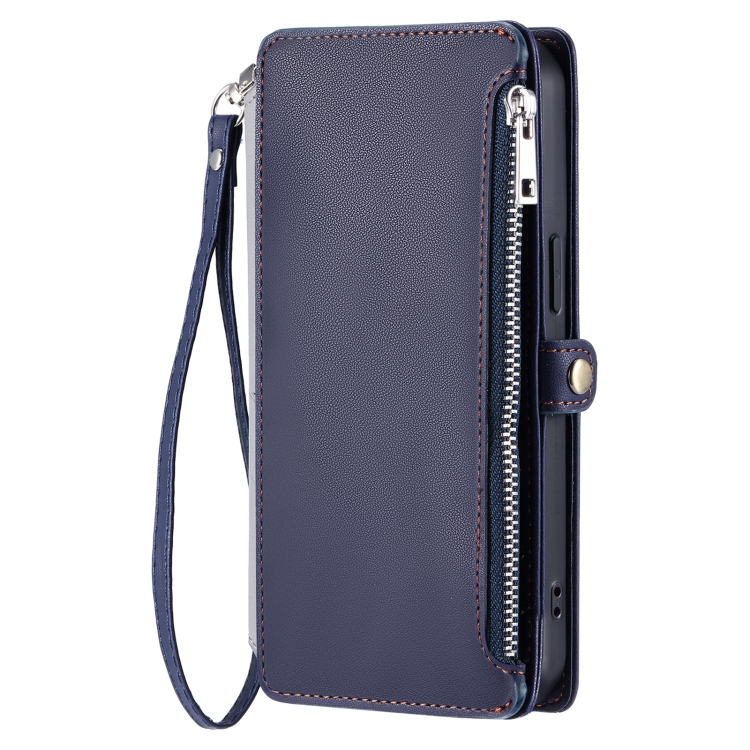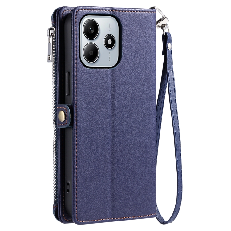 Funda para Teléfono con Cremallera y Ranura para Varias Tarjetas con Costuras de Cuero para Xiaomi Redmi Note 14 5G (Azul)