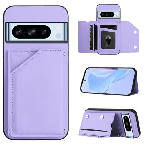 Funda para Teléfono Google Pixel 8 Pro Skin Feel con 4 Ranuras para Tarjetas y Correa para Muñeca (Morado)