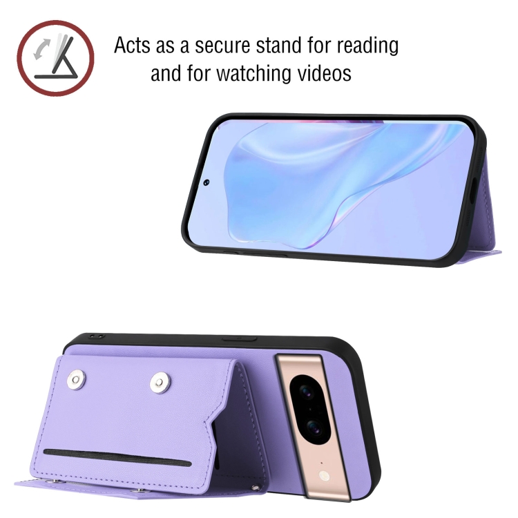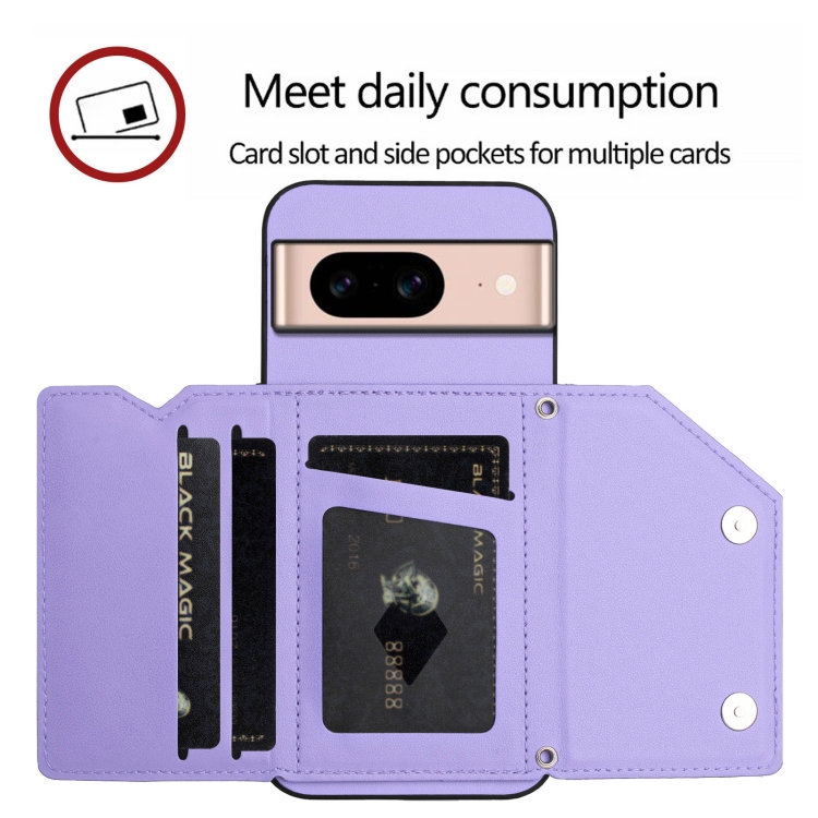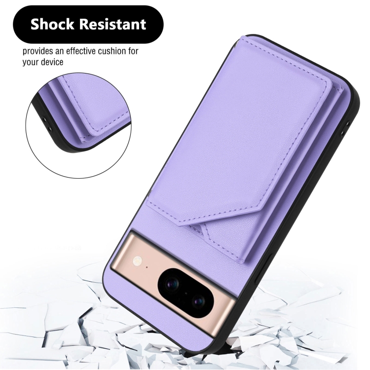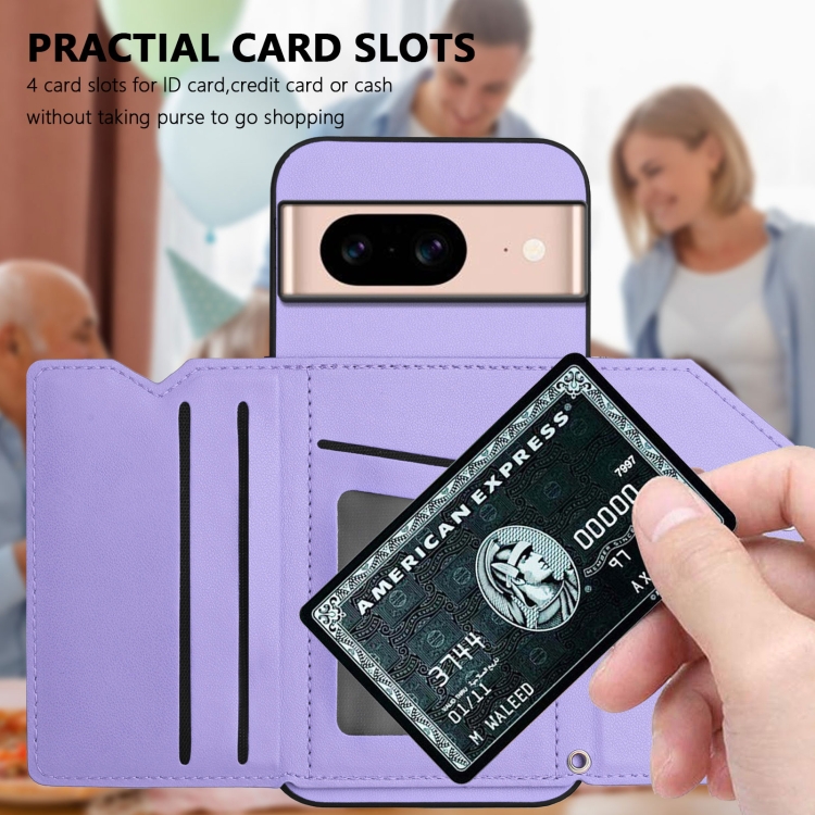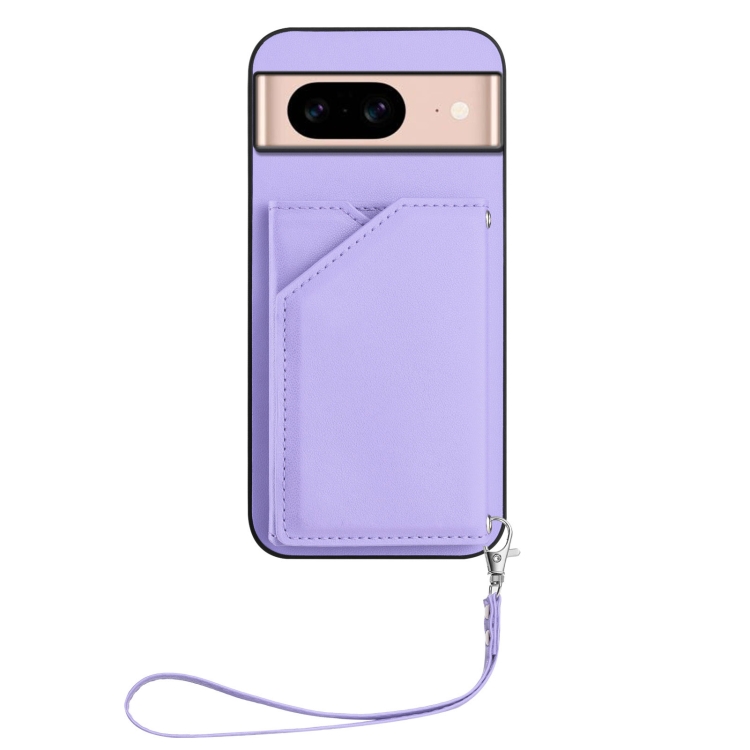 Funda para Teléfono Google Pixel 8A Skin Feel con 4 Ranuras para Tarjetas y Correa para Muñeca (Morado)