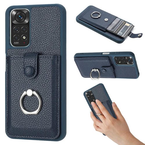 Funda para Teléfono con Diseño de Textura de Lichi para Redmi Note 11S, con Soporte para Anillo y Diseño de Tarjeta (Azul)