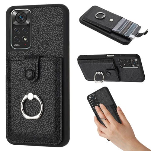 Funda para Teléfono con Diseño de Textura de Lichi para Redmi Note 11S, con Soporte para Anillo y Diseño de Tarjeta (Negro)