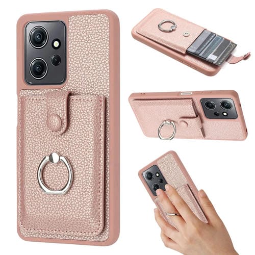 Funda para Teléfono con Diseño de Textura de Lichi y TaRJetero con Anillo para Redmi Note 12 4G (Oro Rosa)