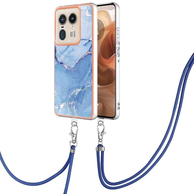 Funda para Motorola Edge 50 Ultra con Imd Doble Cara y Revestimiento Mármol Galvanizado con Cordón (Azul)