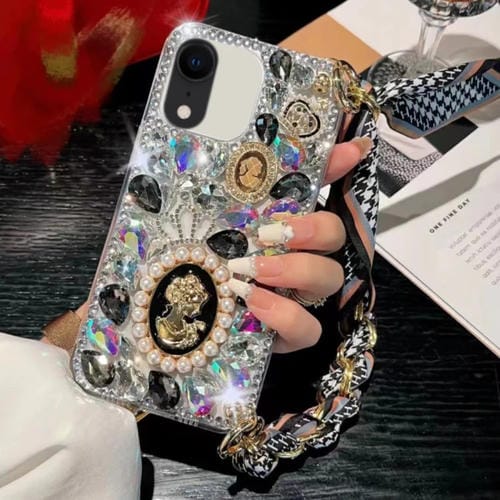 Funda para Teléfono con PC y Pulsera de Piedras Preciosas Moradas y Diamantes para iPhone Xr (Negro)