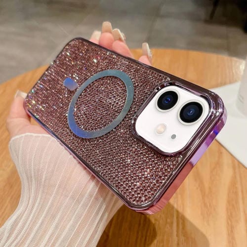 Funda para Teléfono Magsafe iPhone 12 Revestimiento de Diamantes (Morado)