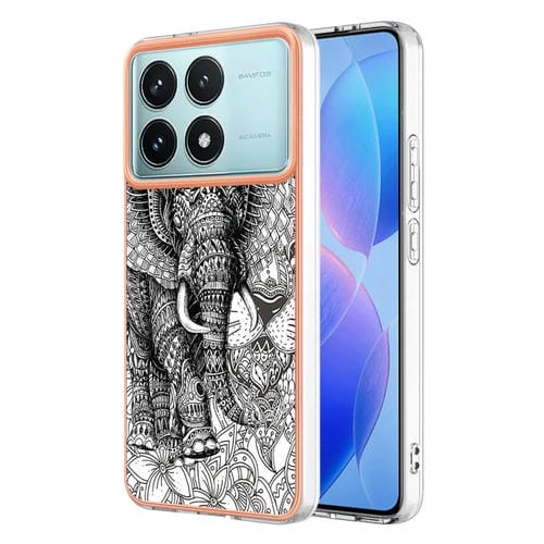 Funda para Teléfono con Revestimiento de Mármol Galvanizado de Doble Cara Imd para Xiaomi Poco F6 Pro 5G (Elefante Tótem)