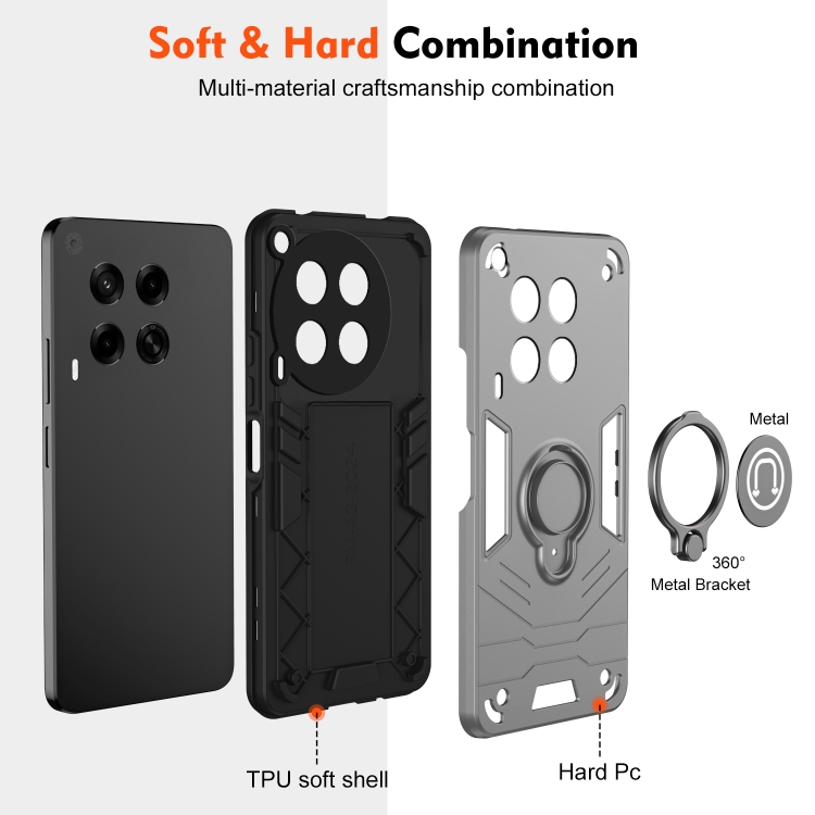 Funda para Teléfono Camshield Tecno Camon 30 4G con Soporte de Anillo (Gris)