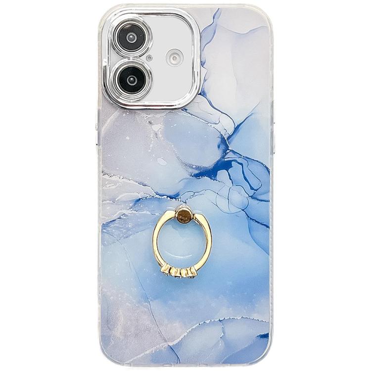 Funda para Teléfono iPhone 16 Soporte de Anillo Textura Mármol Galvanizado (Azul S11)