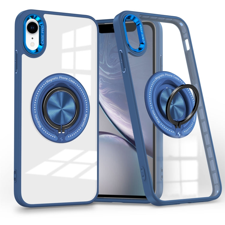 Funda para Teléfono con Soporte de Anillo Giratorio Magnético para iPhone Xr (Azul Oscuro)