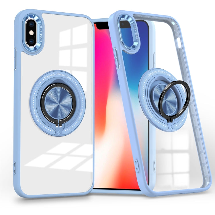 Funda para teléfono iPhone Xs/X soporte anillo giratorio magnético (Azul Claro)