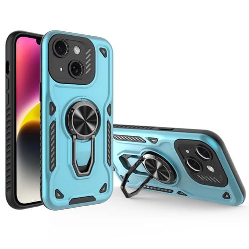 Funda para Teléfono iPhone 14 Plus Soporte Giratorio Metal TPU PC (Azul Brillante)