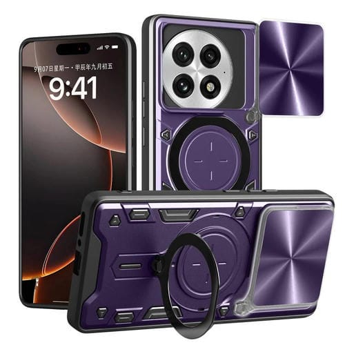 Funda para Teléfono OnePlus 13R 5G con Soporte Magnético Deslizante y Textura de Cd (Morado)