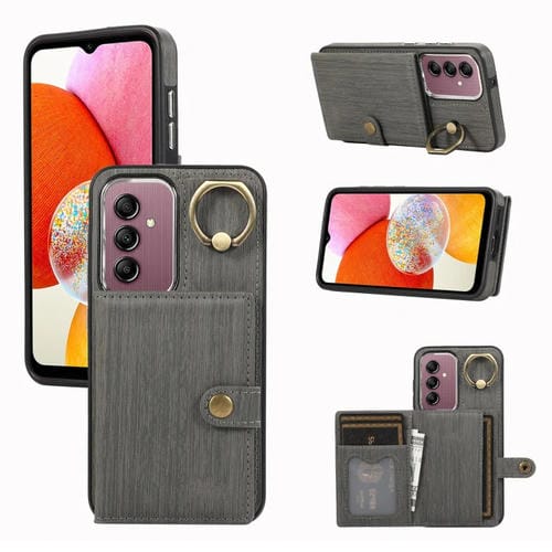 Funda para Teléfono Samsung Galaxy A14 4G 5G con Soporte Anillo Billetera Textura Cepillada (Gris)