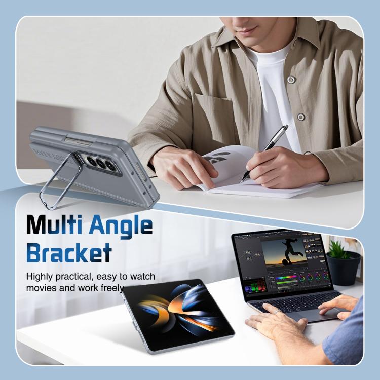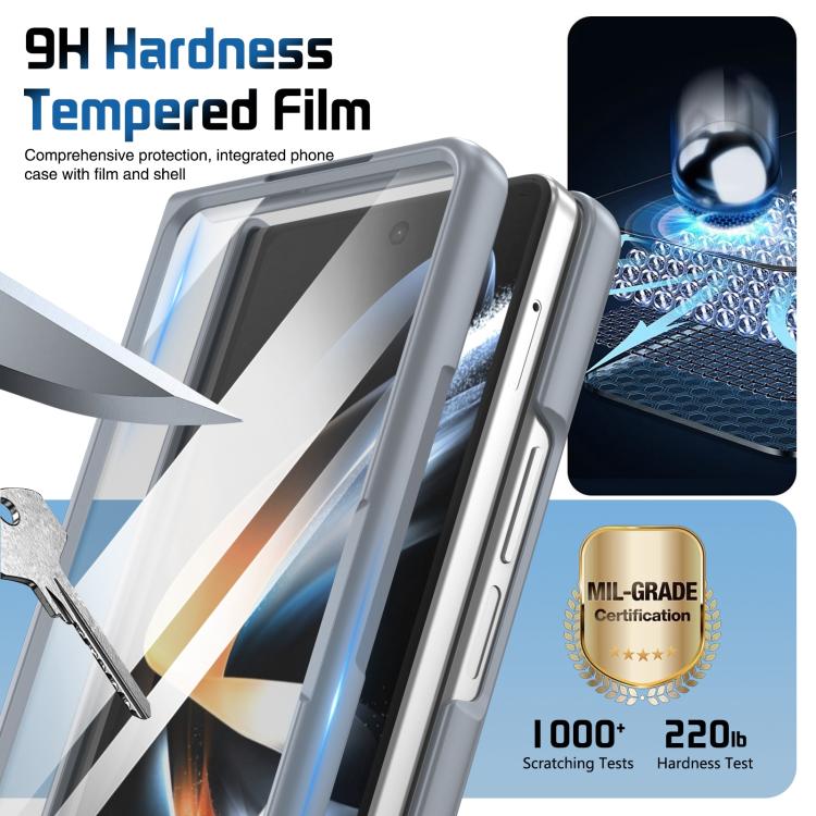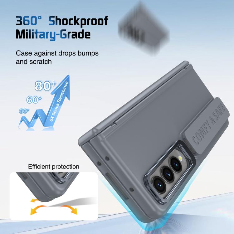 Funda para teléfono con soporte para lente integrada y correa para Samsung Galaxy Z Fold4 (gris)