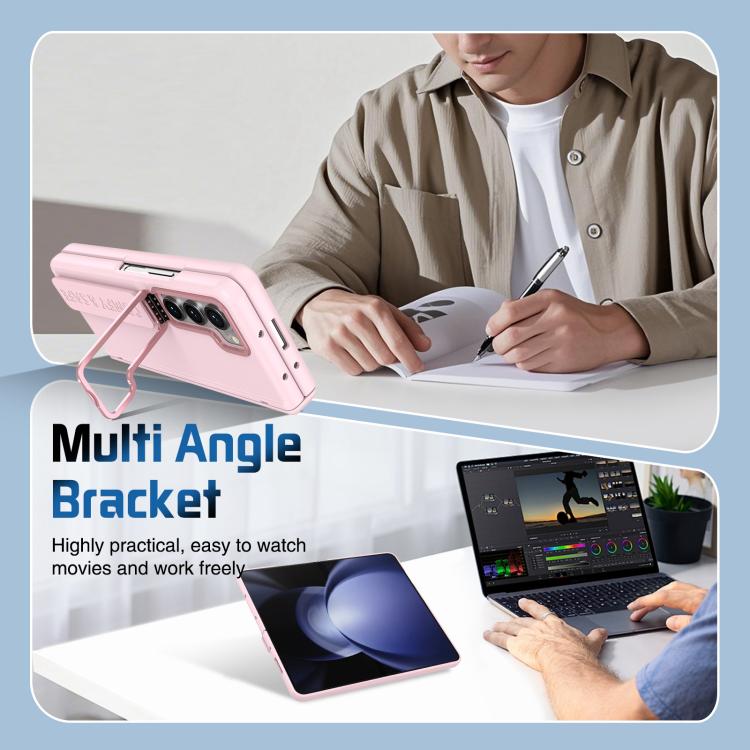 Funda para teléfono con soporte para lente integrada y correa para Samsung Galaxy Z Fold5 (rosa)