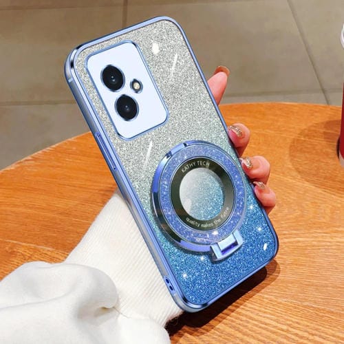 Funda para Teléfono Honor 100 TPU con Soporte Redondo y Purpurina Degradada (Azul Sierra)