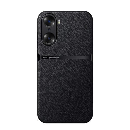 Funda para Teléfono Honor 60 con Tapa Magnética de Cuero de Lichi a Prueba de Golpes (Negro)