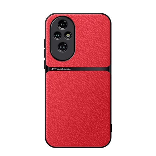 Funda para Teléfono Honor 200 Pro con Tapa Magnética de Cuero Litchi y Protección Total (Rojo)