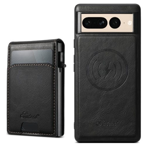 Funda para Teléfono Suteni H19 Oil Wax 2 En 1 Magsafe para Google Pixel 7 Pro con Tapa Extraíble y Ranuras (Negra)