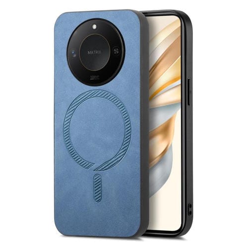Funda Trasera Magnética de PU para Honor X60 5G con Magsafe Estilo Retro (Azul)