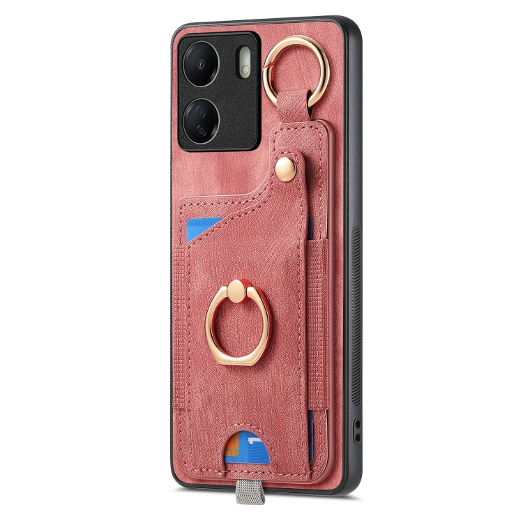 Funda para Teléfono con TaRJetero y Anillo con Tacto de Piel Estilo Retro para Redmi 13C, con Presilla para Colgar (Rosa)