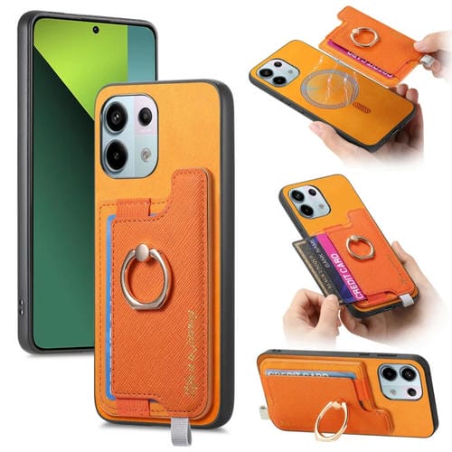 Funda para Teléfono con TaRJetero y Anillo de Cuero con Diseño Retro Magsafe para Redmi Note 13 Pro 5G/Poco X6 5G (Amarillo)
