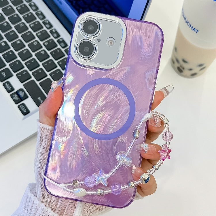 Funda para Teléfono TPU Magsafe iPhone 16 Textura Chapada con Película Lente (Violeta)