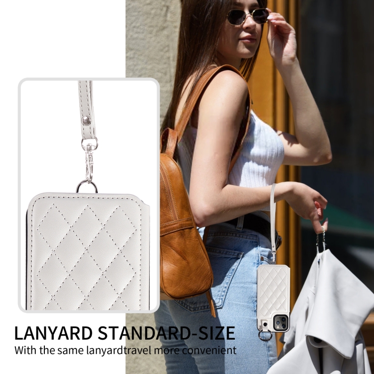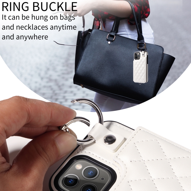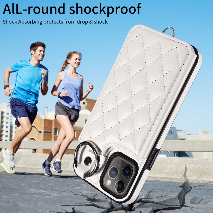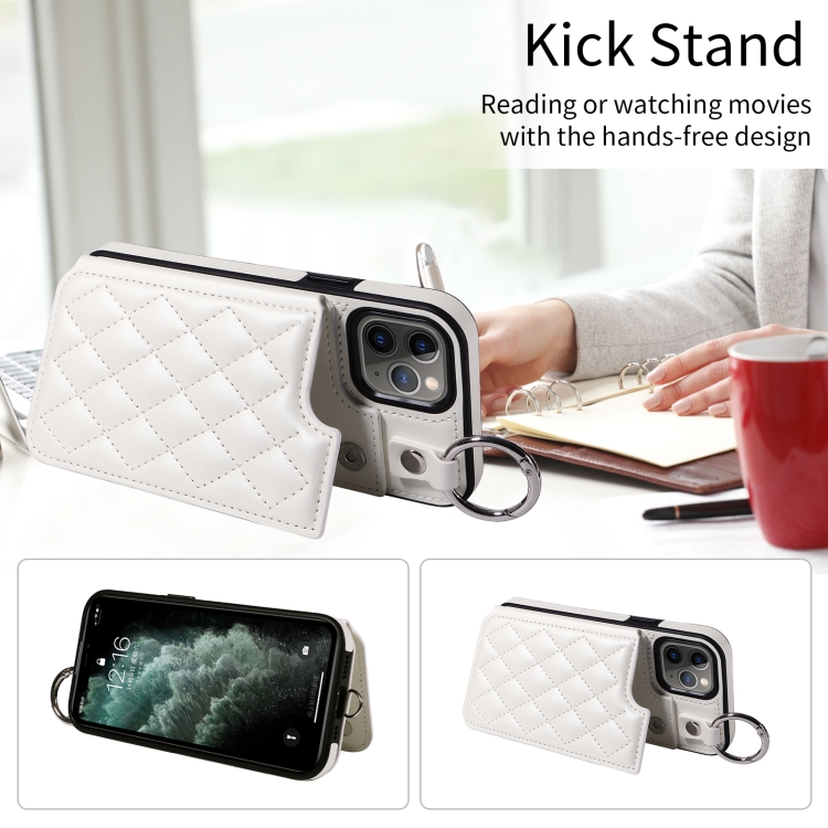 Funda para Teléfono iPhone 11 Pro Textura Rómbica Cordón Corto (Blanca)