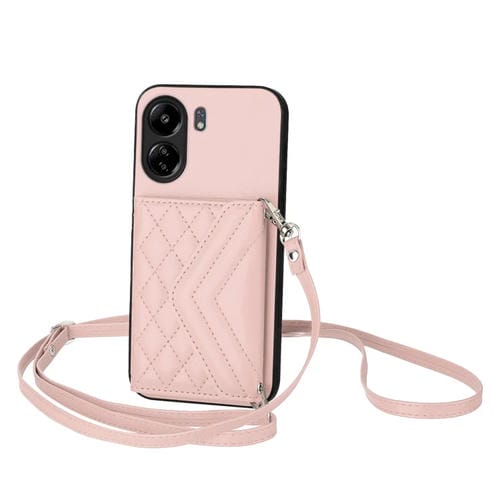 Funda para Teléfono con Textura Rómbica y Rfid para Redmi 13C 4G Global con Cordón Largo (Oro Rosa)