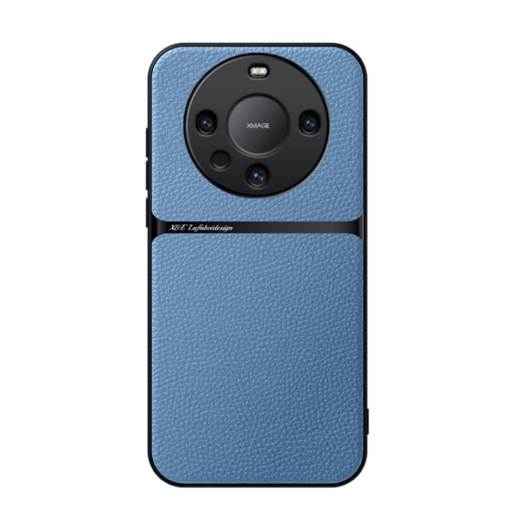 Funda para Teléfono Huawei Mate 60 Pro Piel de Lichi Cobertura Total Magnética a Prueba de Golpes (Azul)