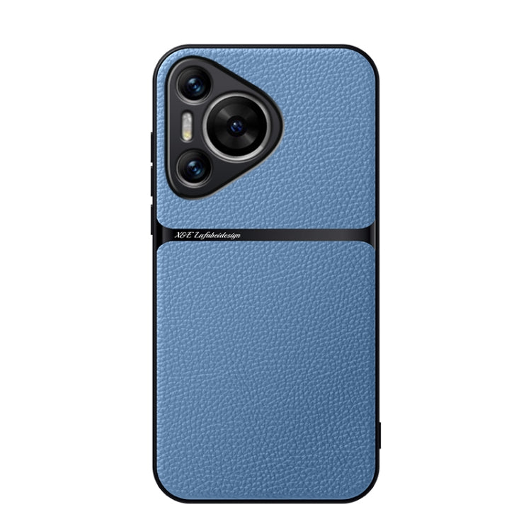 Funda para Teléfono Huawei Pura 70 Piel de Lichi Cobertura Total Magnética a Prueba de Golpes (Azul)